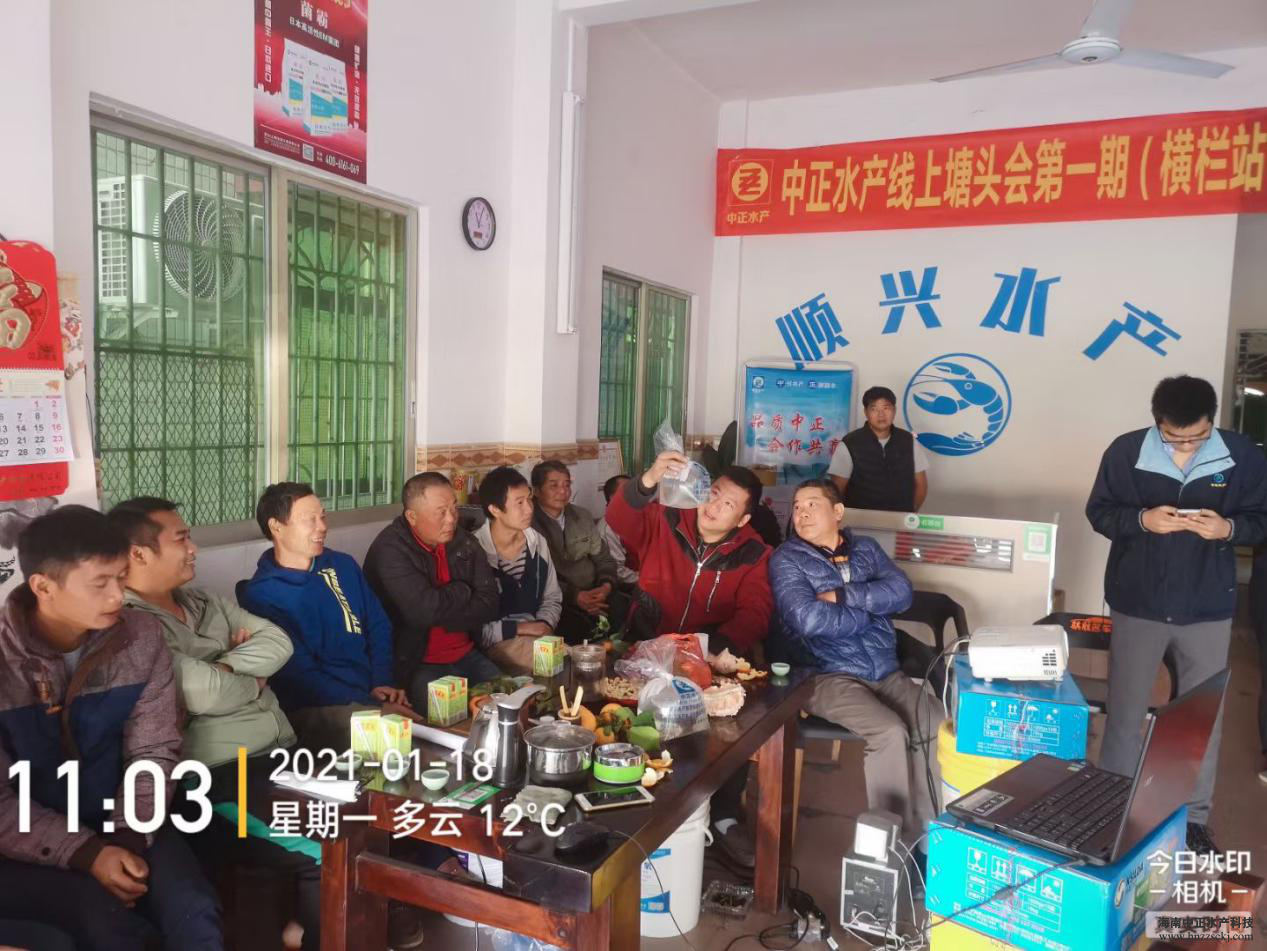 2021年01月18日中正水產(chǎn)第一期線上塘頭會(huì)在中山橫欄鎮(zhèn)順興水產(chǎn)技術(shù)服務(wù)站順利召開。這是中正首次嘗試將傳統(tǒng)的塘頭會(huì)搬上網(wǎng)絡(luò),同時(shí)鏈接南北方養(yǎng)殖戶互相交流心得,傳授養(yǎng)殖經(jīng)驗(yàn)。
