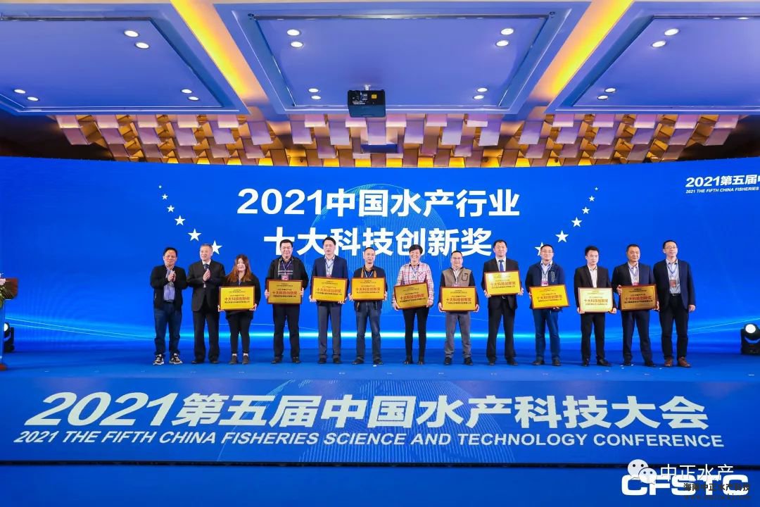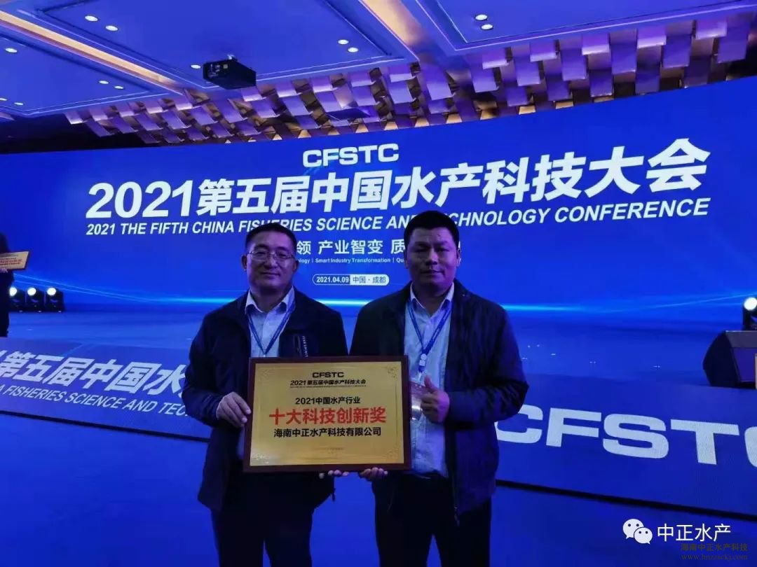 在“2021中國(guó)水產(chǎn)科技大會(huì)頒獎(jiǎng)盛典”上,由水產(chǎn)權(quán)威機(jī)構(gòu)與企業(yè)代表組成的評(píng)委團(tuán),根據(jù)科技創(chuàng)新、行業(yè)貢獻(xiàn)等方面進(jìn)行綜合評(píng)比,最終評(píng)選并現(xiàn)場(chǎng)頒發(fā)了“2021中國(guó)水產(chǎn)行業(yè)·十大科技創(chuàng)新獎(jiǎng)”、“2021中國(guó)水產(chǎn)行業(yè)·十大杰出成果獎(jiǎng)”、“2021中國(guó)水產(chǎn)行業(yè)·十大卓越貢獻(xiàn)獎(jiǎng)”等重磅獎(jiǎng)項(xiàng),中正水產(chǎn)榮獲“十大科技創(chuàng)新獎(jiǎng)”。