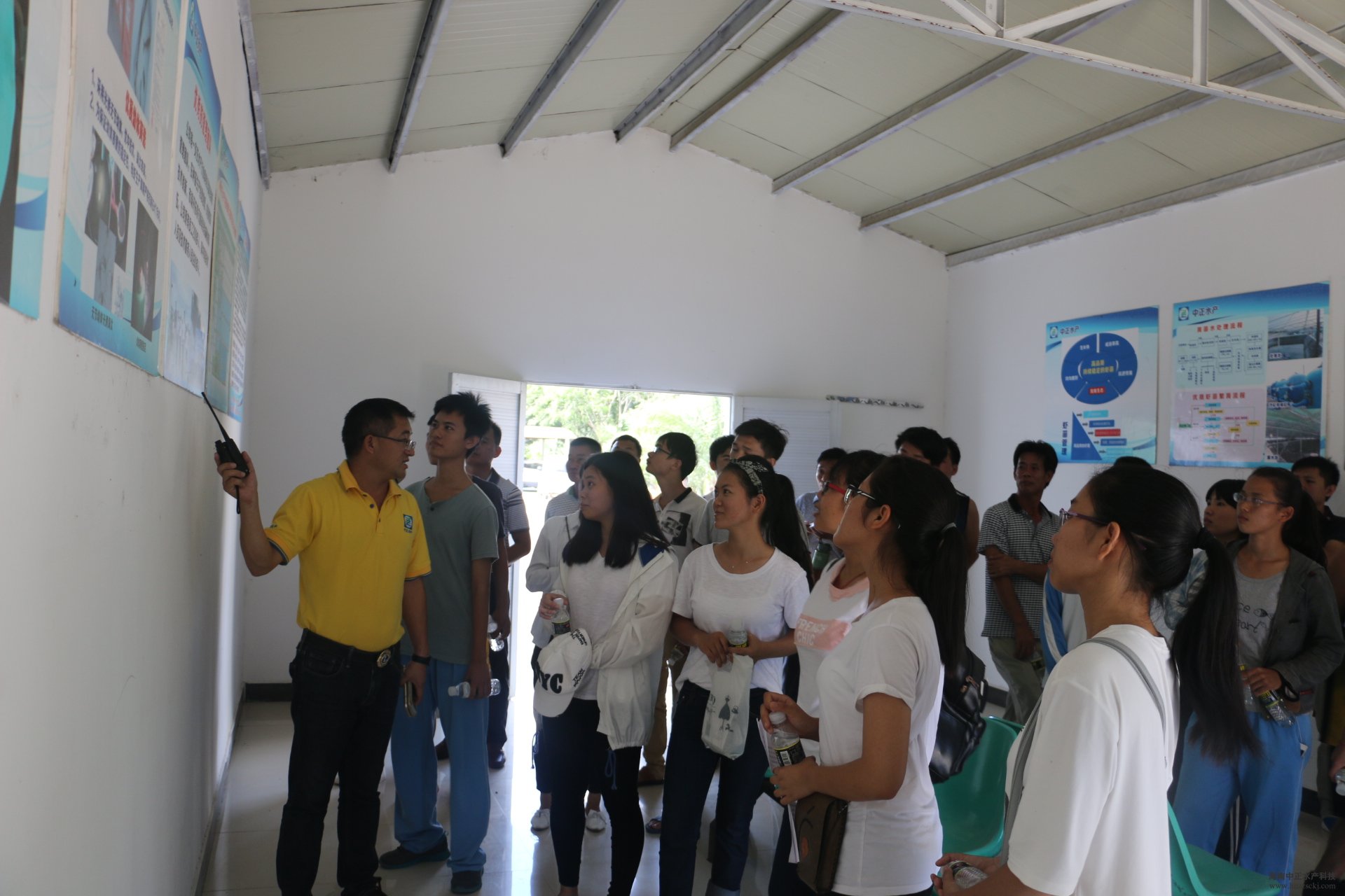 感恩社會(huì)、回饋社會(huì)是我國(guó)中華民族的傳統(tǒng)美德。中正水產(chǎn)雖僅僅剛成立兩周年,時(shí)間雖短,但我們并沒(méi)有忘記感恩社會(huì)、回饋社會(huì)。7月20日下午,由東方市新龍鎮(zhèn)黨委書記邢福磊、新龍鎮(zhèn)黨委副書記鎮(zhèn)長(zhǎng)朱建玲組織了鎮(zhèn)政府相關(guān)部門負(fù)責(zé)人、新龍鎮(zhèn)各村委書記以及20位新龍鎮(zhèn)2016年高考優(yōu)秀學(xué)子和貧困生一起前往海南中正水產(chǎn)科技有限公司,參與由海南中正水產(chǎn)和新龍鎮(zhèn)政府聯(lián)合主辦的愛(ài)心助學(xué)活動(dòng),力助新龍鎮(zhèn)2016年高考優(yōu)秀學(xué)生圓夢(mèng)大學(xué);顒(dòng)開(kāi)始前,中正水產(chǎn)總經(jīng)理王平帶領(lǐng)了他們一起走進(jìn)了藻類生產(chǎn)車間、水處理系統(tǒng)車間、豐年蟲生產(chǎn)車間、育苗生產(chǎn)車間,并給他們?cè)敿?xì)地講解了南美白對(duì)蝦育苗的操作規(guī)范流程,現(xiàn)場(chǎng)氣氛熱烈,洋溢著濃濃的暖意,不斷傳來(lái)熱烈的掌聲。