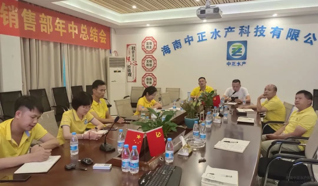 海南中正水產(chǎn)科技有限公司銷售服務(wù)部“2022年度年中總結(jié)會(huì)議”于6月23日在海南總部順利召開,以視頻會(huì)議方式線下、線上相結(jié)合。