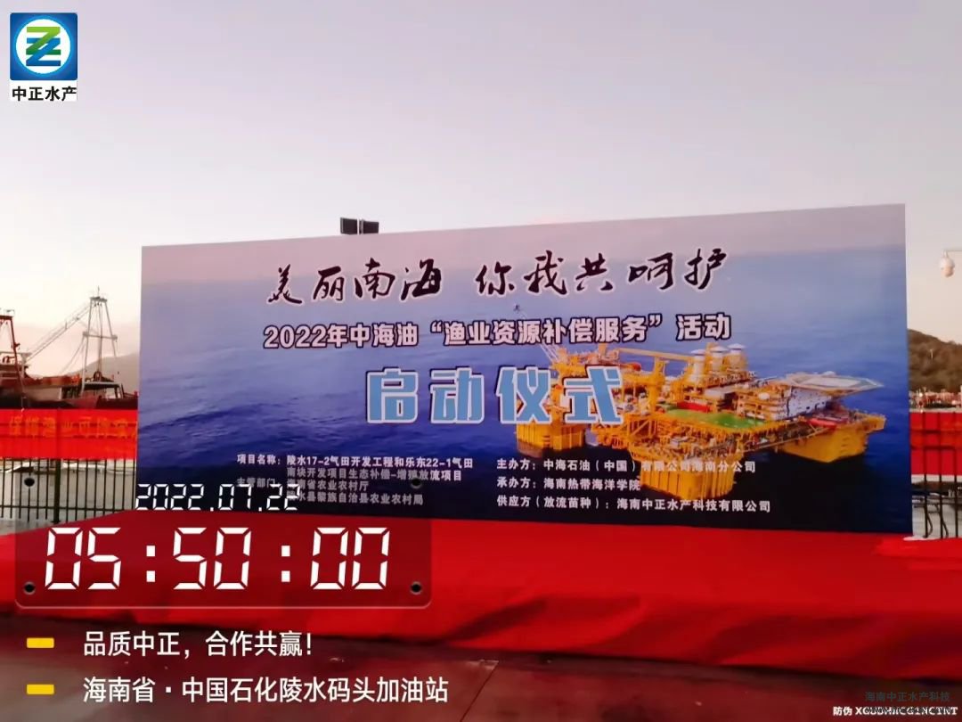 中正水產(chǎn)嚴(yán)格按照要求,在驗(yàn)收專家組、公證人員、 中海油代表、海南熱帶海洋學(xué)院代表等監(jiān)督之下,投放了共計(jì)2100余萬(wàn)尾(粒)的青石斑魚苗、紅笛鯛苗、紫紅笛鯛苗、六斑刺鲀苗、斑節(jié)對(duì)蝦苗和文蛤苗。