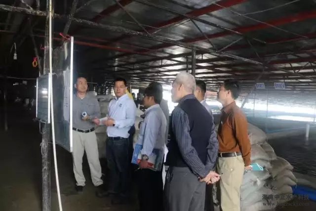 王平總經(jīng)理為考察團(tuán)詳細(xì)介紹了中正公司的標(biāo)準(zhǔn)化育苗流程、水處理系統(tǒng),以及不斷完善中的海邊引水工程、親蝦車間循環(huán)水工程、工廠化循環(huán)水苗種標(biāo)粗工程、廢水處理、水質(zhì)在線監(jiān)測(cè)裝置等。